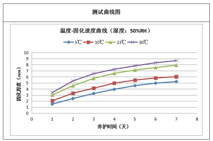 養護時間 d | 固化厚度 mm (濕度:50%RH) | |||